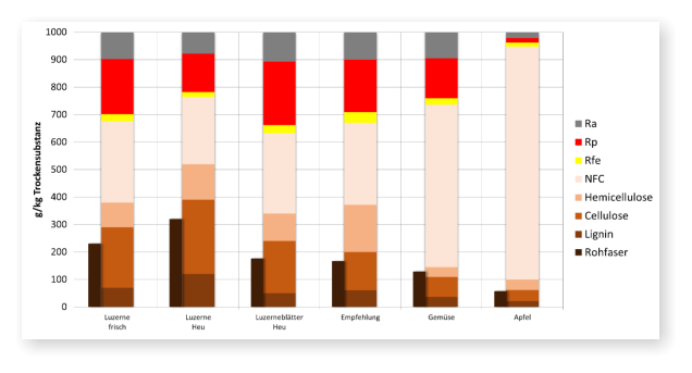 Futtermittel, mit der die einzelnen Fraktionen von Pflanzenfasern, also die
