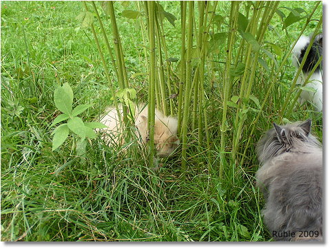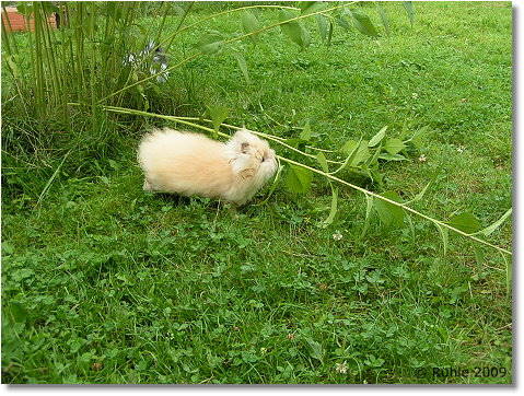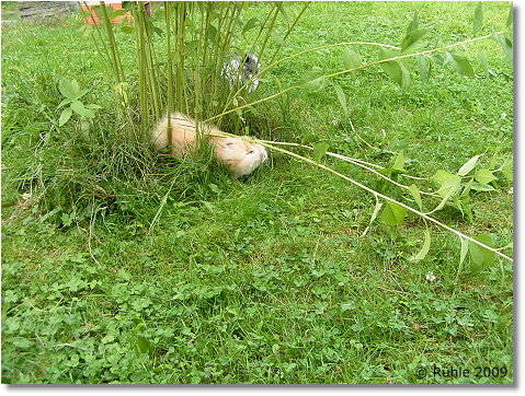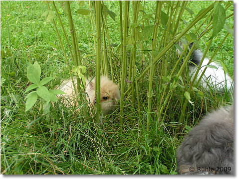 Die Pflanze wächst sehr hoch - wie kommen Kaninchen an die Blätter, wenn unten alles abgefressen ist und wie an die Blüten in 2 Meter Höhe? Ganz einfach: Sie nagen den Stängel solange an, bis die Pflanze umfällt. Ebenso gehen sie vor, um an Samenstände von Süßgräsern wie Getreide zu gelangen. | |||||||||||||||||||||||||||||||||||||||||||||||||||||||||||||||||||||||||||